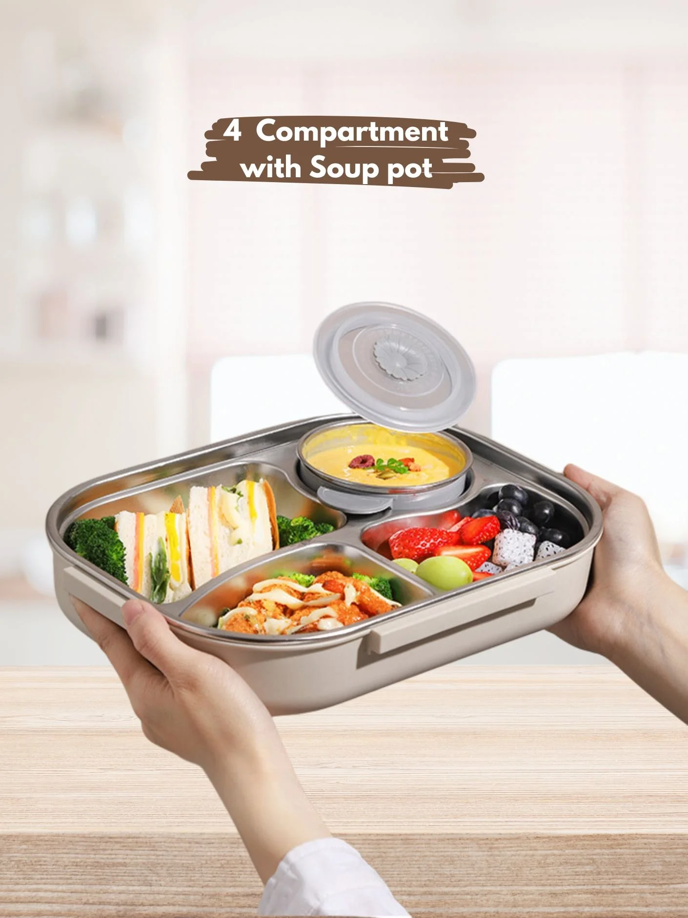 Bento Lunch Box Stainless Steel 2000ml – 4 Compartment Leak-Proof BPA-Free